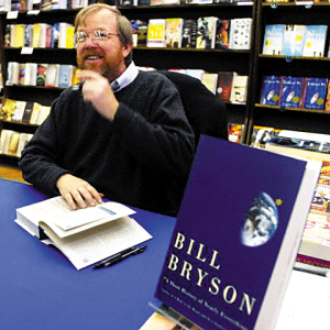 最初引起我注意到比尔·布莱森的是他的两本英语和美语的通俗史话,书题分别是《母语》(The Mother Tongue,1990年)和《美国制造》(Made in America,1994年)。两本书虽说也附有详尽的注释和索引,像是学术著作,却绝无经院派高头讲章吓人的架势,而是轶事趣闻迭出,基本上属于清通晓畅又洞见深中的社会语言学一类读物,读着读着保你非笑出声来不可。我一向主张学外文得激发兴趣,所以曾从两书中选出若干章节作为教材,使用效果良好。
