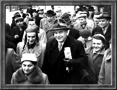 1956年10月19日早晨,波兰统一工人党八中全会即将开幕之时,苏共中央第一书记赫鲁晓夫突然率军政大员,组成庞大的苏共中央代表团,乘专机飞临华沙上空,要求着陆并出席波党八中全会。