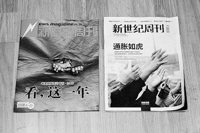 让人称奇的是,在“胡舒立团队版”的《新世纪周刊》热卖的同时,还有一份出版于2010年1月1日的《新世纪周刊》同亭售卖。