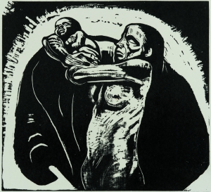 凯绥·珂勒惠支(1867.7.8———1945.4.2),德国表现主义版画家和雕塑家。她的早期代表作品有《织工反抗》、《起义》和《死神与女人》等。1928年,她作为德国艺术教育界第一位女教授被选为柏林艺术学院版画系主任。鲁迅曾引述一位评论家的话说:“她(的作品)早年的主题是反抗,而晚年是母爱以及死。”