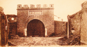 天津武备学堂原址在大光明桥东河沿。1900年八国联军入侵,武备学堂的爱国教官和学员奋起抗击,战斗中90余名学员英勇牺牲。这张明信片是被炮火焚毁之后的学堂外景。