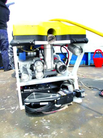 羊泽林介绍,水下声呐仪可以将海底地形形成三维图像显示在电脑上,如果确定下面有遗存,可以放水下机器人下海。这个方方正正有点像发电机的机器人,本领很大,可以潜入水下170米,并配备摄像头和照明灯,可以同步把图像传到船上的电脑上。考古队员通过操纵手中的遥控器,控制上下、前进,如同操控遥控汽车一样简单。