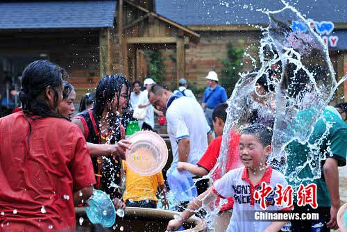 中新网苏州7月1日电(李克祥)远离云南的苏州,也有了“泼水节”。今天上午,为期二个月的“2010白象湾泼水节”在苏州开幕,众多游客与十几位傣族、佤族、哈尼族的姑娘和小伙一起,演绎出多民族狂欢的“泼水大战”。