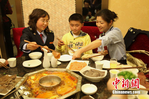 中新网广安4月14日电(廖小兵 袁代光) 4月14日是青海玉树地震一周年纪念日。当日,爱心妈妈、四川省广安市广安区国税局干部张洁、蒋素蓉、吴姝姝专程来到玉树地震孤儿张成就读的广安育才学校,为他参加拔河比赛助威、一起跳民族舞、交心谈心、主动为他选购衣服,并与他一起吃火锅,让张成走出地震阴影,度过了温馨快乐的一天。