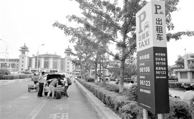 6月1日,北京站,乘客拿着行李在出租车扬招站下车。新京报记者 薛珺 摄