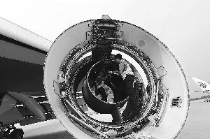 昨天,专业施工人员在对波音747发动机舱进行拆解作业。这架国航服役近15年的波音747客机的整体拆解本周将结束,机身段将交给首都机场进行消防除冰雪演练,发动机等2000多种部件全部回收再利用。这是国内民航业首次尝试飞机专业化回收拆解。本报记者 李继辉摄