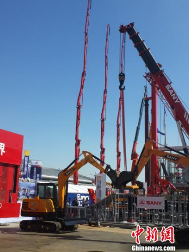 亚欧博览会展示装备制造业 重型挖掘机互相“亲吻”