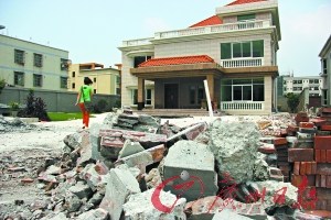 东莞豪华“违建别墅区”昨开拆庭院门墙
