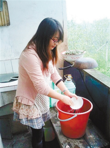 直到现在,10名女教师每周一至五就住在学校的两人间教师宿舍。因为是十几年前的老房子,她们的厨房厕所都要挤在一起用。墙壁因为年久失修,一遇上刮大风下暴雨,宿舍就要哗哗进水。