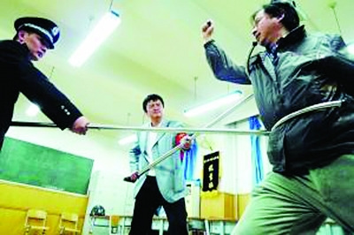 小偷持刀逃跑拒捕 民警用钢叉将其一击叉翻(图)