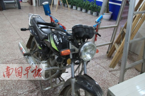 一系列飞车抢夺首饰案件,引起市民的关注。该市城警支队组成专案组,调阅了大量的监控录像,最后锁定这3名男子为嫌疑人。其中,一名男子经常穿着灰色长袖T恤和牛仔裤,骑着一辆黑色的无牌号摩托车作案,最明显的特征是这辆摩托车的后视镜框为蓝色。