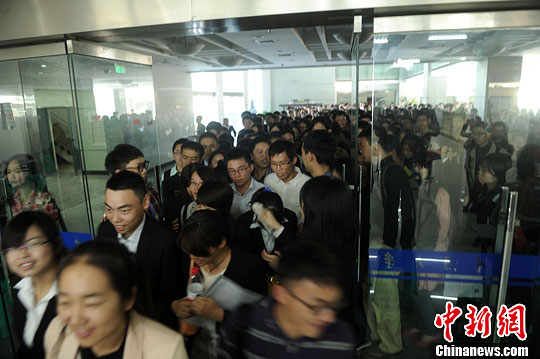 显然2013年毕业生的“史上最难就业季”阴影仍未消散,招聘现场这些2014年毕业的莘莘学子已经开始奔波于各个企业招聘会、随身带着简历求职信。