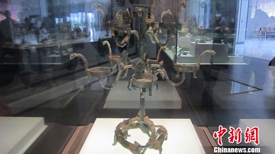 东汉的三翼龙座九连青铜灯。记者 丁文蕾 摄