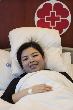 昨天上午,省中医院12楼血液科1号病床上,这位80后女老板,双臂静脉插着带细皮管的针头,皮管连牢仪器,血液从左臂抽出来,右臂还回去,转动的仪器里会留下血液中的造血干细胞。