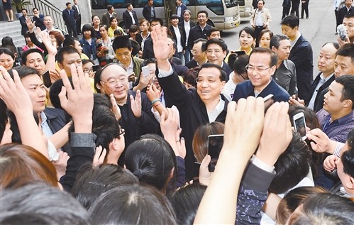 此前的近一个小时里,刚飞抵万州五桥机场的李克强抓紧时间前往企业考察,看望广大库区群众,与大家交谈、合影。