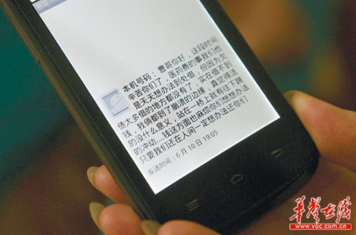 经济与精神上的压力让夫妻二人几近崩溃。几天后的一天夜里,凌益红步行至株洲大桥,突然萌发轻生念头,所幸被好心人拦下。事后,她给何娭毑的儿子曹先生发了一条短信:钱这方面麻烦你们也想想办法,只要我们还在人间,一定想办法还你们。