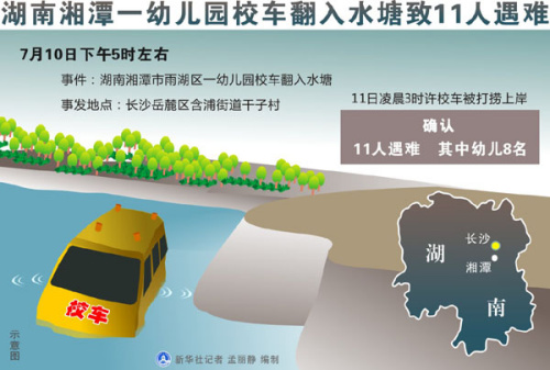 图表:湖南湘潭一幼儿园校车翻入水塘致11人遇难 新华社记者 孟丽静 编制