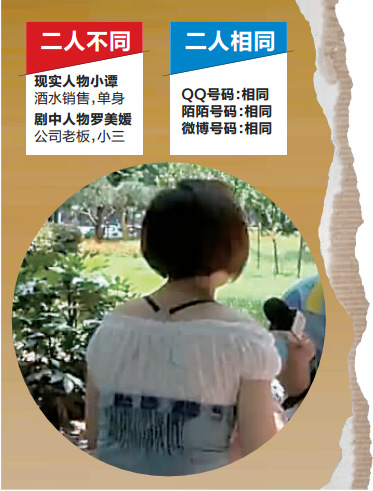 小谭说,因为热播电视剧《离婚律师》里,“小三”罗美媛的4个联系方式中,有3个和她的一模一样。老板觉得自己影响了公司形象,发短信给她,让她不要再去上班了。