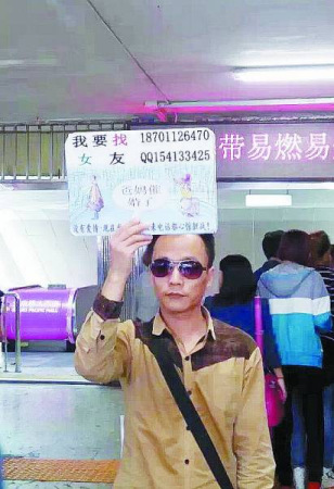为了找到女朋友,他想了各种办法,甚至在南京、北京,跑到N多地铁口举牌征婚,为此,还上了十来家电视台。