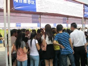 记者注意到,本场招聘会中,许多技术工岗位以及生产岗位都受到求职者的冷遇。但是记者在创业项目推介区看到,围观的学生特别多,大家都希望能找到一个适合自己的项目。“很漂亮,开个这样的小店,的确是不错。学习多久可以自己上手……”今年大四学新闻专业的付姗高兴地说。