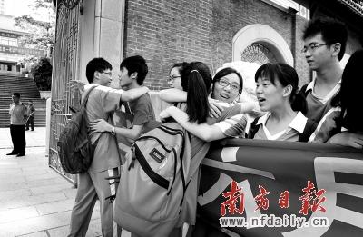 今年高考期间,不少出国留学的学生在执信中学门前拉横幅祝福参加高考的同学。如今这现象在中考考场前也屡屡上演。南方日报记者 郭智军 摄