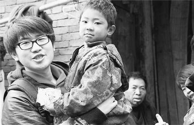贾凡抱起陈家寨小学学生尚光顺。 资料图片