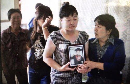 房山南尚乐村,死者母亲抱着死者生前的照片,亲友在她身边安慰她。昨天傍晚,5名学生在房山南河村一处旧河道积水处玩耍时,两人溺亡。新京报记者 王嘉宁 摄