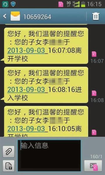 “由于孩子小,记不住老师布置的一些家庭作业,老师每天都会及时将这些信息发到我们手机上,方便家长帮助和监督孩子完成。”家长马先生说:“成绩信息、日常表现、课堂考评、出勤记录、课表,全在这里了,甭管是平时上班还是出差在外,都能及时了解孩子在学校的情况,还可以随时通过手机短信或互联网与老师沟通交流。”