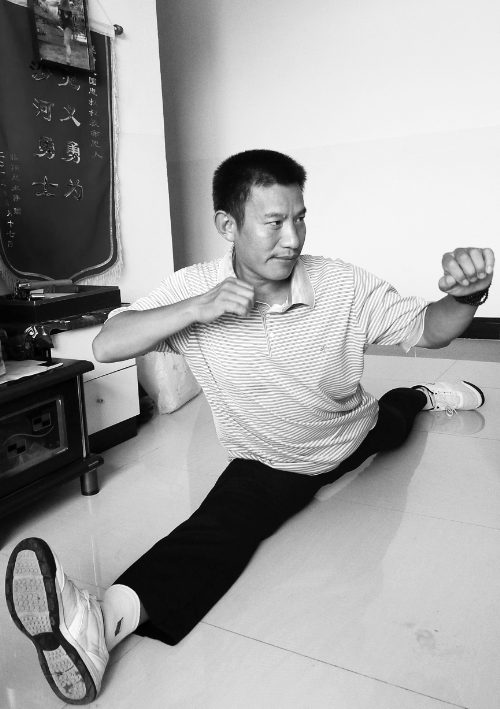 赵国忠常在锦旗下练武