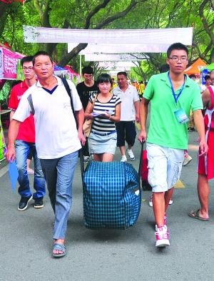 拿行李送孩子上大学 家长在体育馆里打地铺(图)