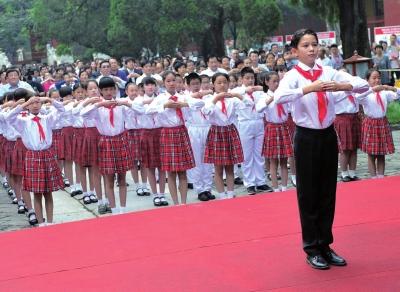 教师节前夕,第4届北京孔庙国子监国学文化节拉开帷幕。昨天,在孔庙大成门前,东城区的100名中小学生和外籍留学生代表向老师行传统的敬师礼。