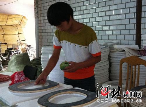9月9日上午,记者走进衡水滨湖新区魏屯镇东家娄疃村一个家庭作坊,看到11岁的小梦晗正认认真真地用胶水往医用马桶盖子上粘薄海绵,每粘一个就可以赚到1毛钱。记者看到小梦晗的脸上没有同龄孩子的天真与活泼,眼神里是与其年纪极不相称的隐忍与平静。
