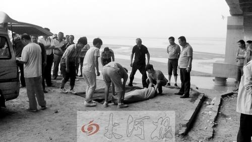 昨日下午4点30分许,郑州黄河二桥大桥下,聚集了近百村民,一名年轻男子被从滩地抬到了河边的公路上。医生用蓝色袋子盖在男子身上。据附近村民介绍,下午1点左右,3名年轻小伙在距离岸边较远的河滩戏水,不慎落入水中,三人立即被河水冲走,其中两人被附近赶来的村民救起,另外一名小伙消失在水中。随后,民警、消防人员和急救人员赶到河岸。经过近3个小时的打捞,救援人员终于在距离落水点下游200米左右的水中将小伙打捞起来,但小伙已没有气息。