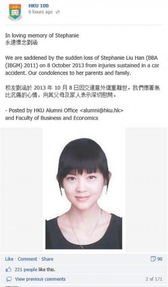 港大官方Facebook昨晚发布