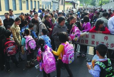 现在接送孩子的主力军多是老人。 吴俊 摄