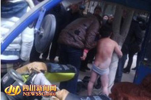 小孩逃学 寒冬街头被父扒光衣服绑树上抽打(图)