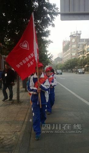“你好,减少雾霾,拒绝烟花爆竹!”“燃放烟花爆竹不仅浪费资源,还会使空气急剧恶化。”……昨日下午三点,成都石室锦城外国语学校的十三名初三学生,在校长李胜等老师的带领下,穿着校服,举着校旗,排成两路走上成都街头,向市民发出“拒放烟花爆竹”的倡议。