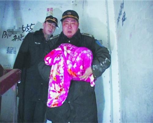 巡防队员穿着厚厚的棉衣,而被弃的男婴才裹着一个薄薄的毯子。