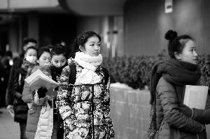 昨天,北京电影学院艺考初试开始,报考表演专业的考生们按顺序进入考场。 本报记者 和冠欣摄