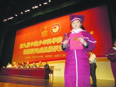 秦欣然获得“十佳小院士”称号。学校提供