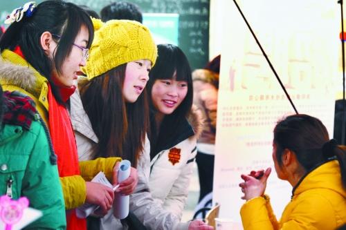 在另一个展位上记者注意到,一位年近半百的女士正与用人单位攀谈,咨询相关情况。“儿子社会经验少,我就是来给他作参考的。”陪儿子来找工作的周女士说。