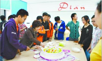 Dian团队师生们为创始人刘玉教授(左二)过生日 资料照片