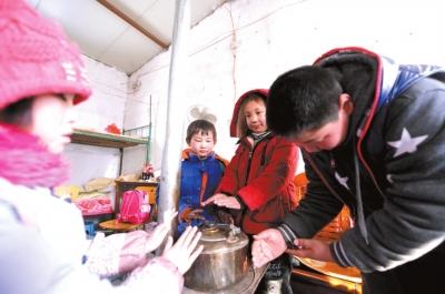 上午7点半左右,陆续有130多名学生到校报到,六七十名学生随后跟家长回家。天气寒冷,但学校的电已被切断,教室内取暖用的电暖扇无法使用,易本超便将年龄较小的孩子安排在用蜂窝煤取暖的几间房内,气温升高时才安排学生进入教室。昨天,孩子们都在没有暖气的教室内上课。