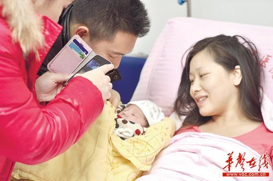 ▲2月26日,湖南省地矿医院,雷超超顺利生下一子,亲人第一时间拍下合影,随后她传上微博与粉丝分享喜悦。记者 唐俊 摄