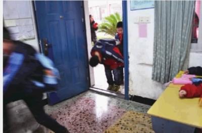2月28日早上,长沙市岳麓区阳明小学,来上学的四年级四班学生进教室前都会90度鞠躬向老师问好,老师们也会鞠躬还礼。记者 李健 摄