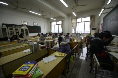 C3604,这是长沙学院工商管理系六楼一间教室的编号。坐在这间教室可享受暖暖的空调,但每名学生得交100元。3月2日,长沙学院工商管理系党总支书刘昊解释,“100元”是向考研学生收取的押金,由学生会管理,考完后将退还学生。在该校其他院系,则没有带空调的自习室。