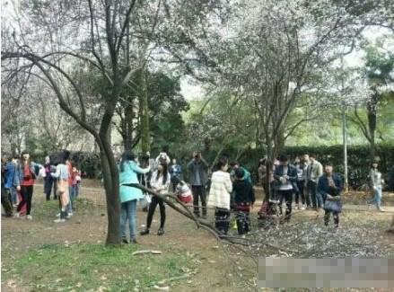 武大校园2米长树枝疑被赏花游客砍断(图)