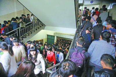 湖北大学考点,考生涌入考场。记者何晓刚 摄