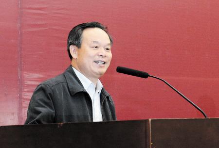 ←周其凤院士在北大湖南校友会成立15周年庆典上发表演讲。石祯专 摄