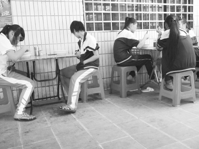 昨日11时50分左右,记者赶到石山镇时,正值学校放学时间。住校的学生们走出校门后,有的在路边摊位上买清补凉,有的在路边吃米线,还有的到路边小食店里吃粉汤。在路边一家小食店,10多名石山中学的学生正围坐在路边的几张桌子旁,无一例外都点了一碗粉汤。